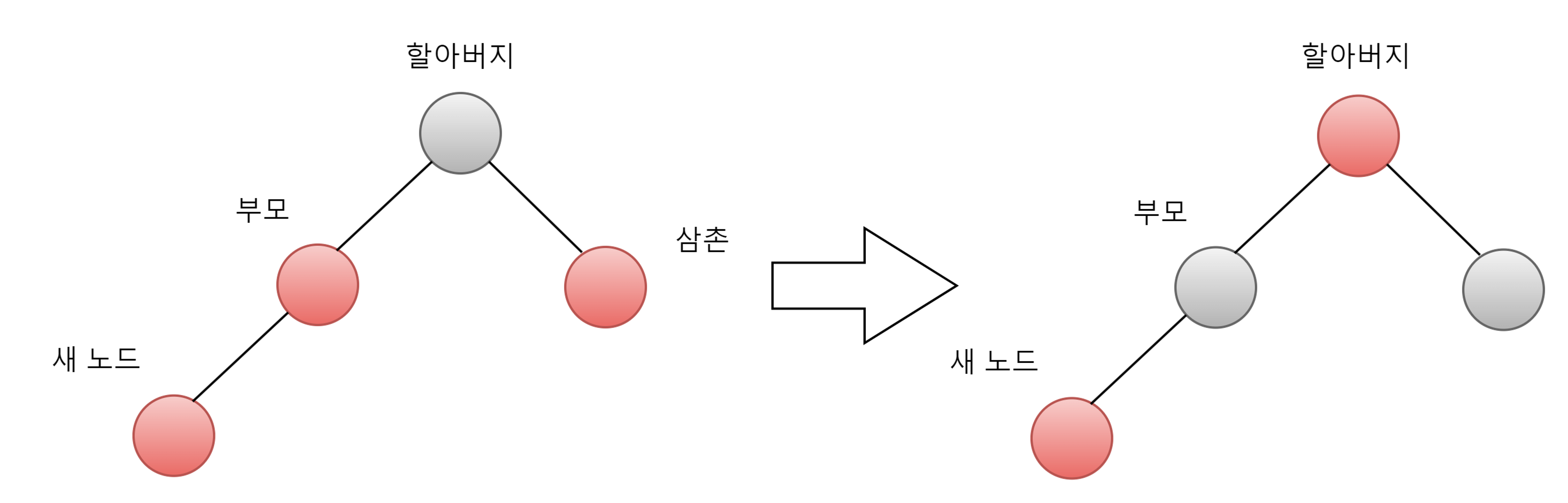 -기본적으로 부모 노드와 삼촌 노드를 검은색으로 만들고 할아버지 노드를 빨간색으로 칠한다.