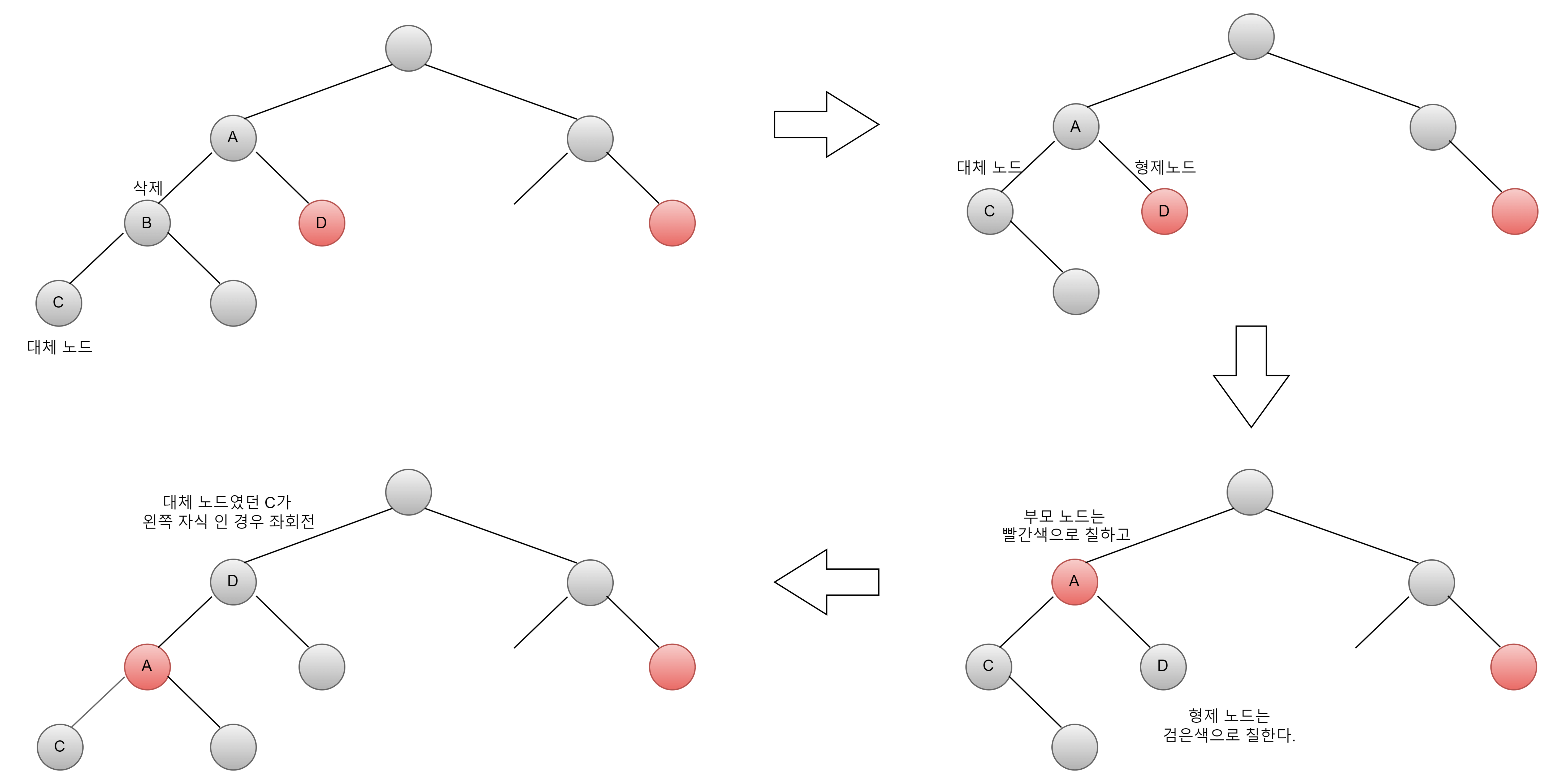 왼쪽 자식은 빨간색, 오른쪽 자식은 검은색인 경우로 바꿔서 다시 처리한다.
