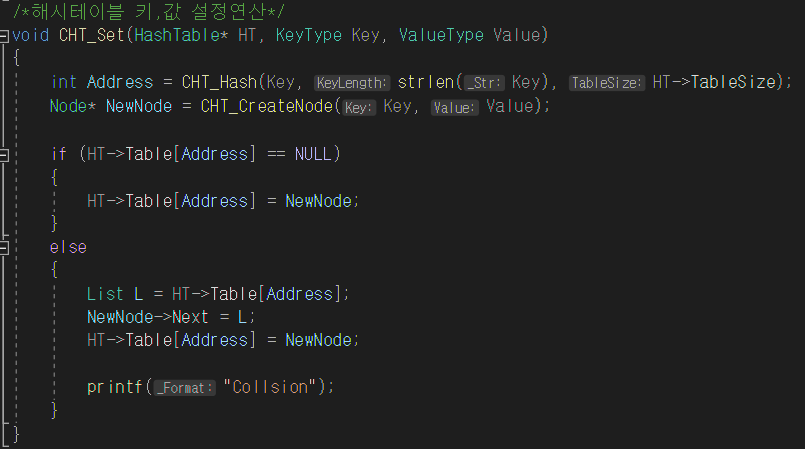 -해시테이블 키,값 설정연산