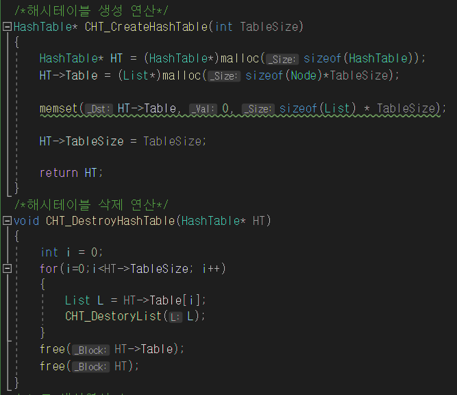-해시테이블 생성 및 삭제 연산