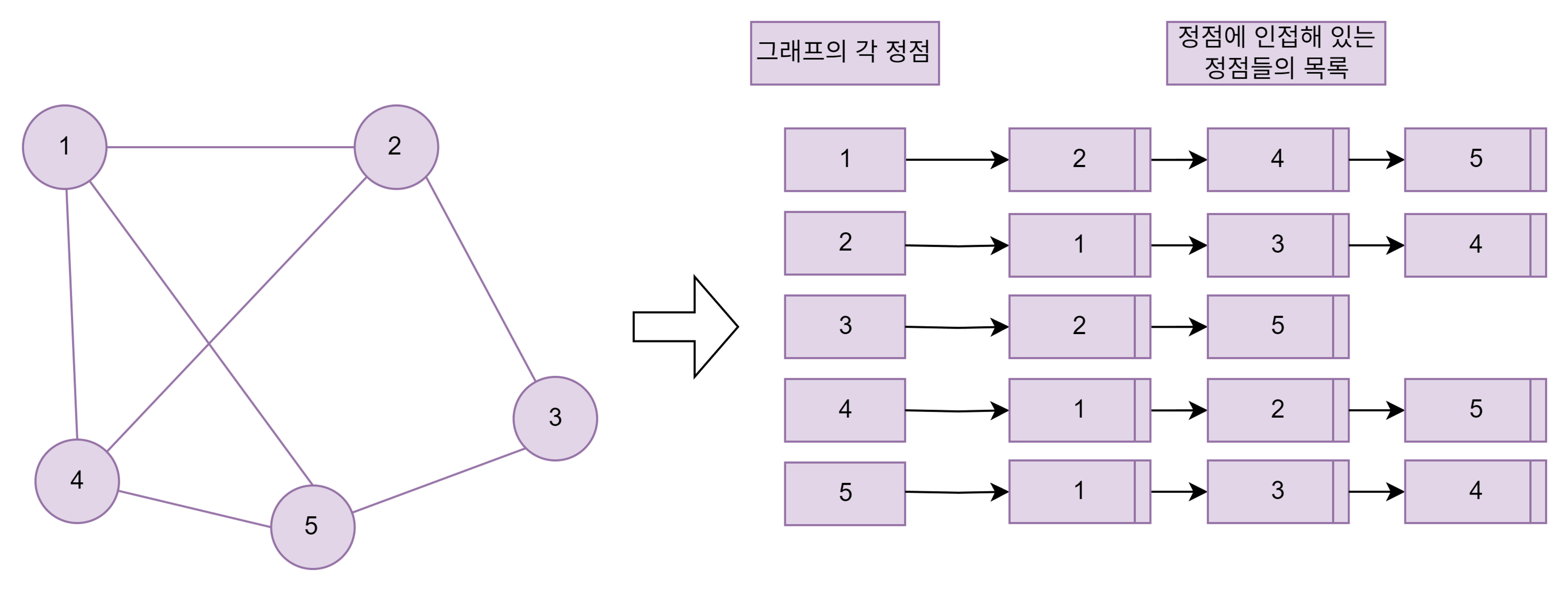 -정점이 자신과 인접한 정점의 목록을 리스트로 관리하는 방법.