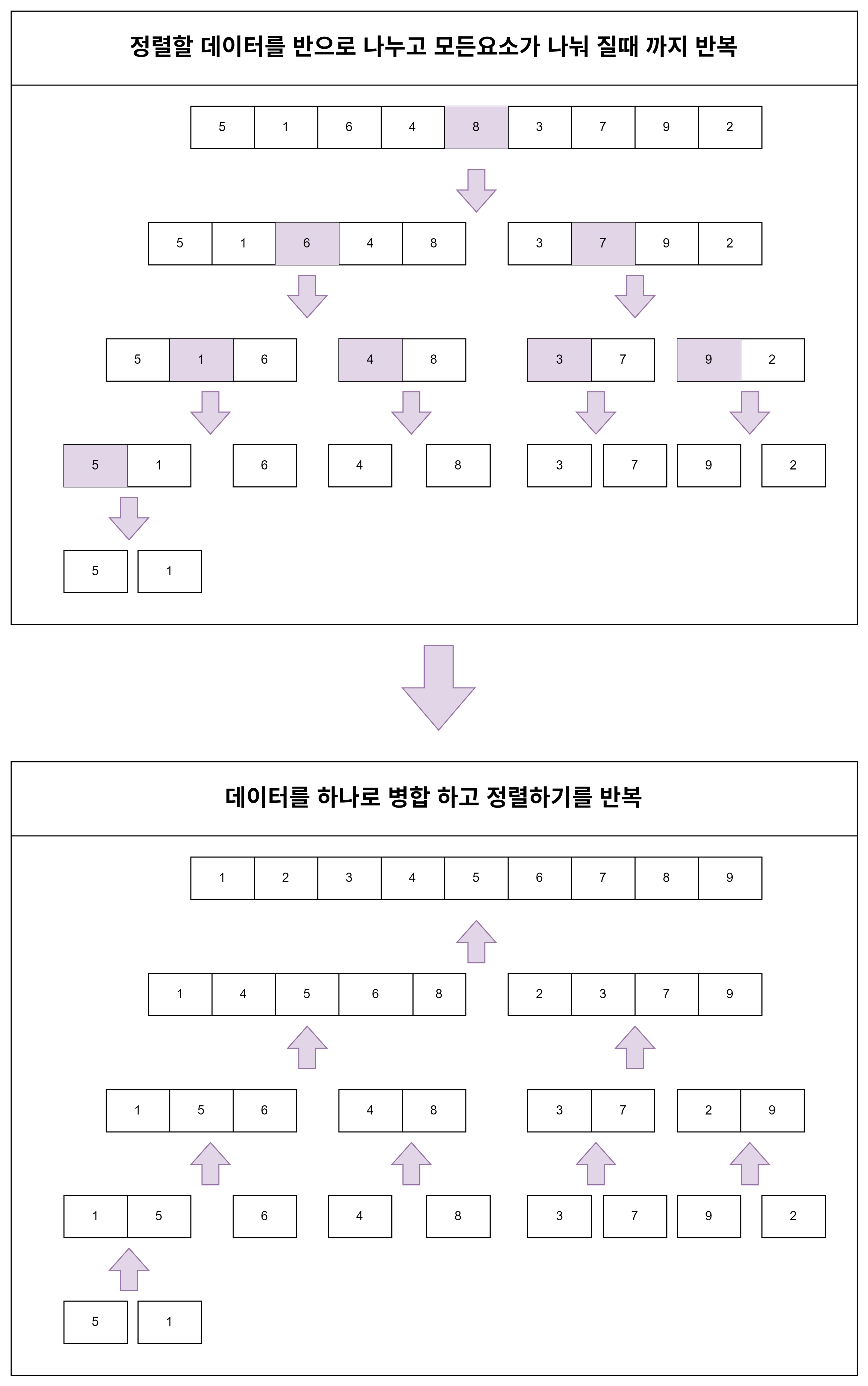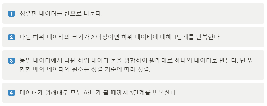 -분할정복 알고리즘을 기반으로 둔 정렬 알고리즘.
