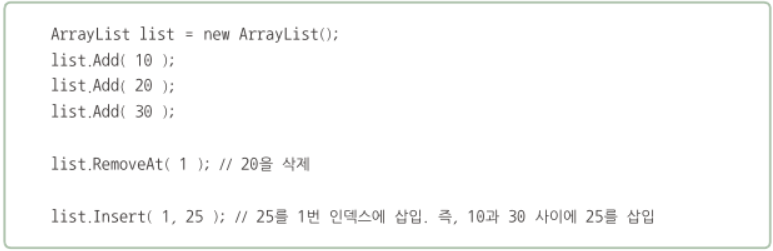 -요소를 추가하는 Add(), 삭제하는 RemoveAt(), 삽입하는 Insert() 등 메소드 제공