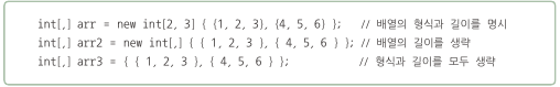 -정의 : 배열의 [ ] 안에 하나 이상의 차원을 사용하여 표현하는것