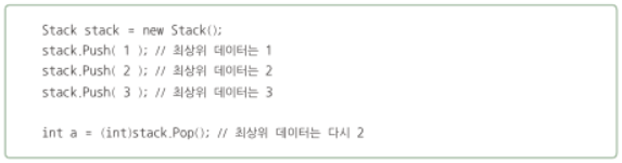 -데이터를 집어넣는 Push(), 꺼내는 Pop() 메소드를 제공