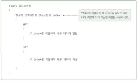 인덱서: 객체내의 데이터에 접근하게 해주는 프로퍼티
