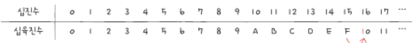 -16진수는 숫자가 16일떄 자리 올림하는 방식이다.