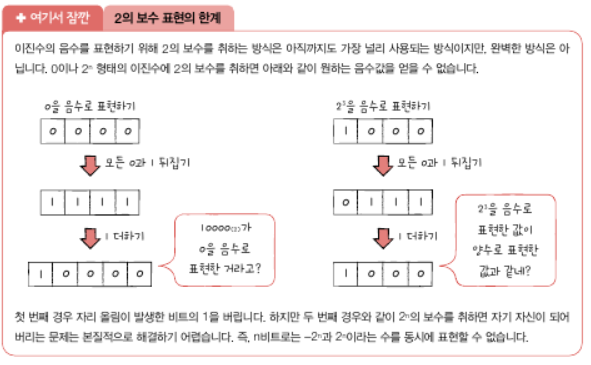 -이진수는 2의 보수를 구해 그 값을 음수로 간주하는 방법을 쓴다.