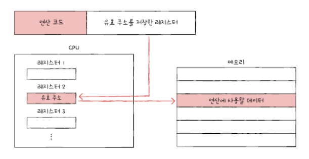 -연산할 데이터를 메모리에 저장하고 그 메모리 주소를 레지스터에 저장하고 또