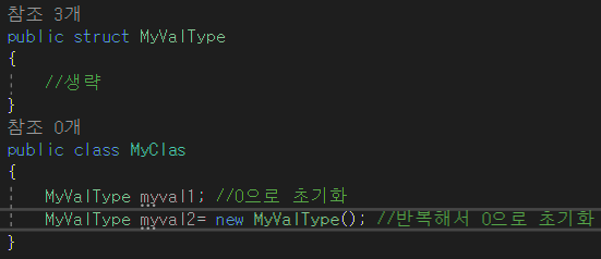 -myval2은 initobj라는 IL명령을 수행하는데 추가시간이 소요된다.
