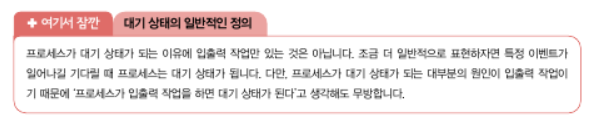 5)대기상태(blocked): 입출력 장치의 작업을 기다리는 상태.