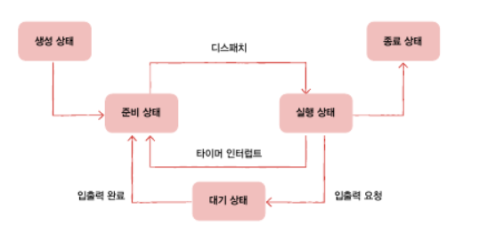 3)준비상태(ready): CPU의 자원을 할당받아 실행하기 전 대기상태.