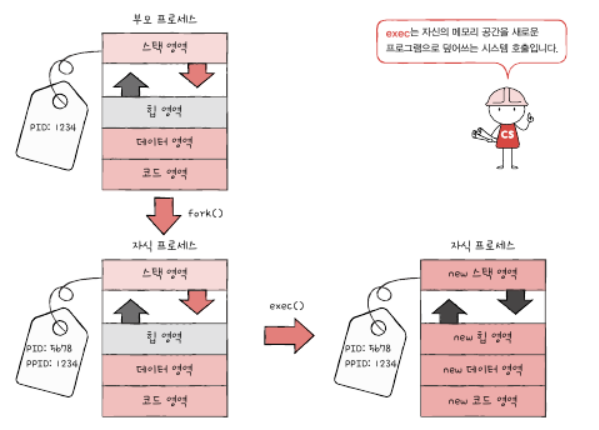 복제본은 exec를 통해 새로운 프로그램이 된다.