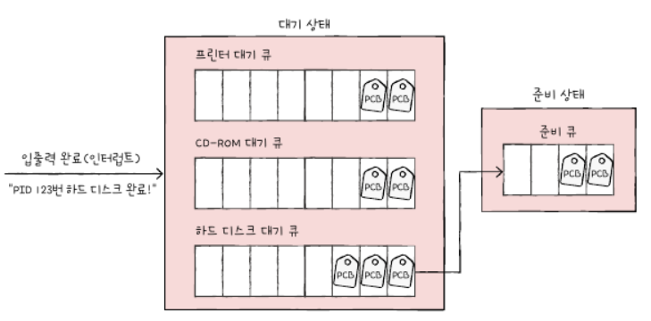 *각기 다른 대기 큐에서도 우선순위를 바탕으로 준비 큐로 넣어진다.