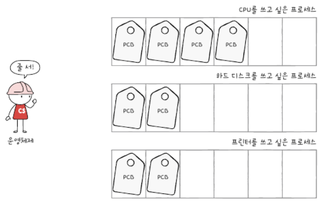 -PCB에 우선순위가 있어도 CPU가 다음 프로세스를 찾기 위해 모든 PCB를 찾아보는 건 비효율적.