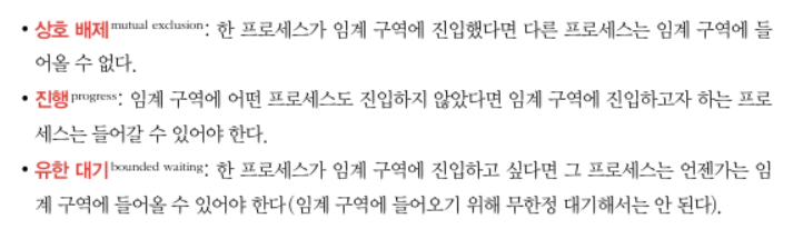*임계구역을 문제를 해결하기위한 운영체제의 3원칙