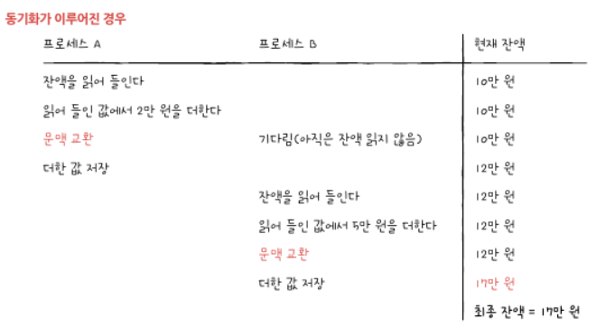 -통장의 잔액을 계산하는 프로세스가 있다 가정 할 때 잔액이라는 자원은 프로세스가 동시에