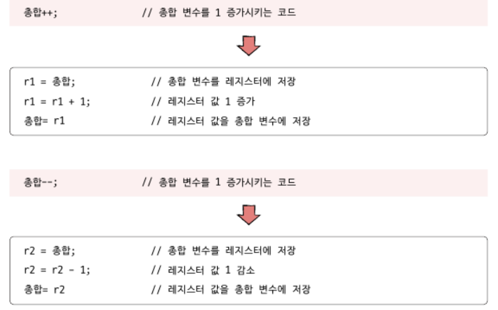 -고급언어가 저급언어로 변환되면서 여러 줄의 코드가 생성되고