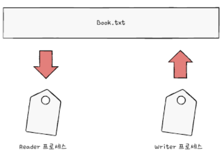 -book이라는 텍스트가 있을 때 writer의 프로세스가 실행되어야 reader프로세스가 올바르게 작동