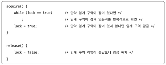 *바쁜대기(busy wait):잠금(락) 상태를 지속적으로 확인하는 상태.