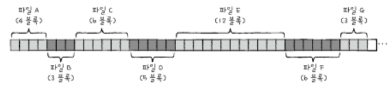 -보조기억장치 내 연속적인 블록에 파일을 할당하는 방식.