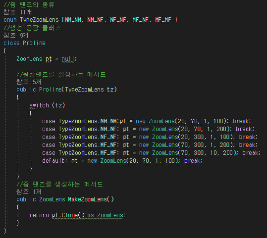 --하나의 줌 렌즈 원형을 가지고 있고 원형을 기반으로 렌즈 객체를 생성하는 메서드를 가진다.