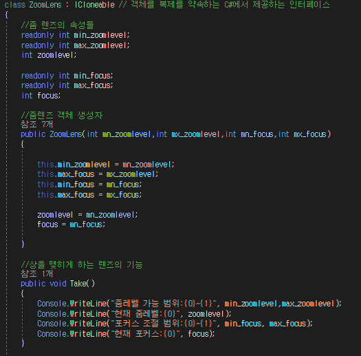-렌즈에 해당하는 ZoomLens 클래스는 자신을 복제하는 메서드를 가진다.