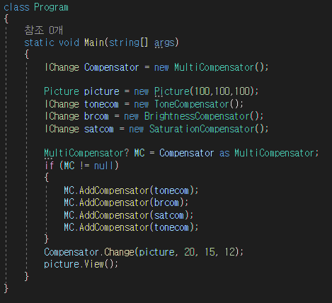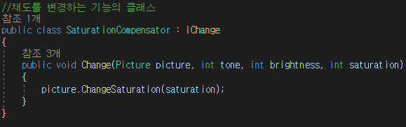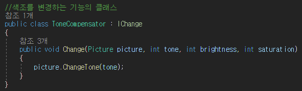 -Ichange의 인터페이스에 따라 파생클래스(ToneCompensator, BrightnessCompensator, SaturationCompensator)의 실질적 기능을 구현한다.