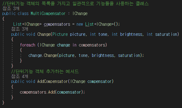 -MultiCompensator 클래스는 단위기능 객체들의 리스트를 가지고 일관적으로 기능들이 적용되도록 한다.