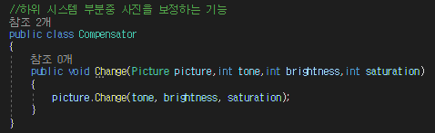 -PictureManager,Compesator 클래스는 하위시스템 클래스들로 여러 기능을 내포한다.
