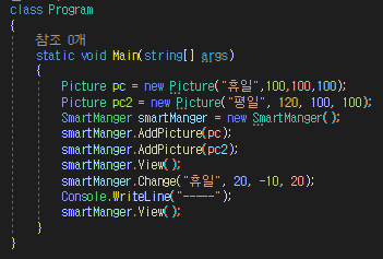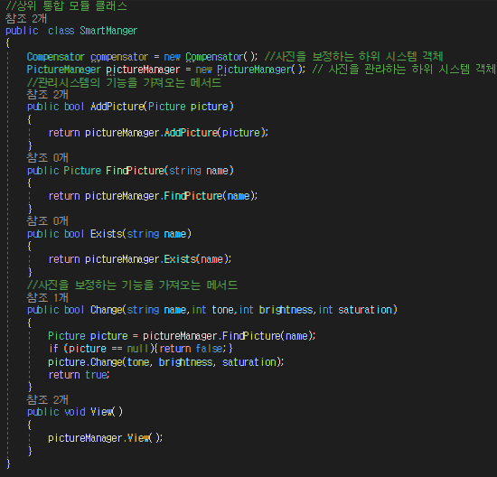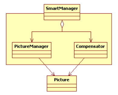 -SmartManger 클래스는 상위 시스템 클래스로 하위시스템(PictureManager,Compesator)를